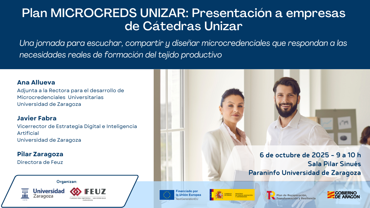 Presentación del Plan Microcreds a empresas con cátedras institucionales UNIZAR Una jornada para escuchar, compartir y diseñar microcredenciales que respondan a las necesidades del tejido productivo 06/10/2025